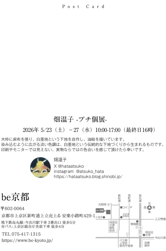 2026/03/30 Category : News 畑温子プチ個展2026年5月 日程2026年5月23日(土)~27日(水)10時~17時(最終日16時) ギャラリーbe京都さんにてプチ個展を開催させていただきます ぜひご高覧ください https://www.be-kyoto.jp/news/putie042 PR 0 Comment Comment Form お名前name タイトルtitle メールアドレスmail address URLurl コメントcomment パスワードpassword